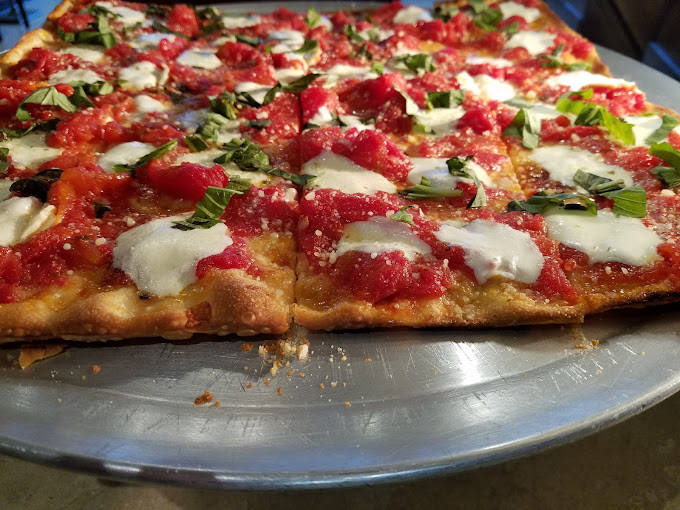 This pizza is amazing!! We had their regular pie and white with ricotta and the flavor is out of this world. Staff is super polite and friendly. I asked about their Brooklyn pie they had behind the counter and he told me he was going to give me a piece to bring home with my order. Oh my god... Sooo good. This is my and my husbands new favorite pizza place for sure!!